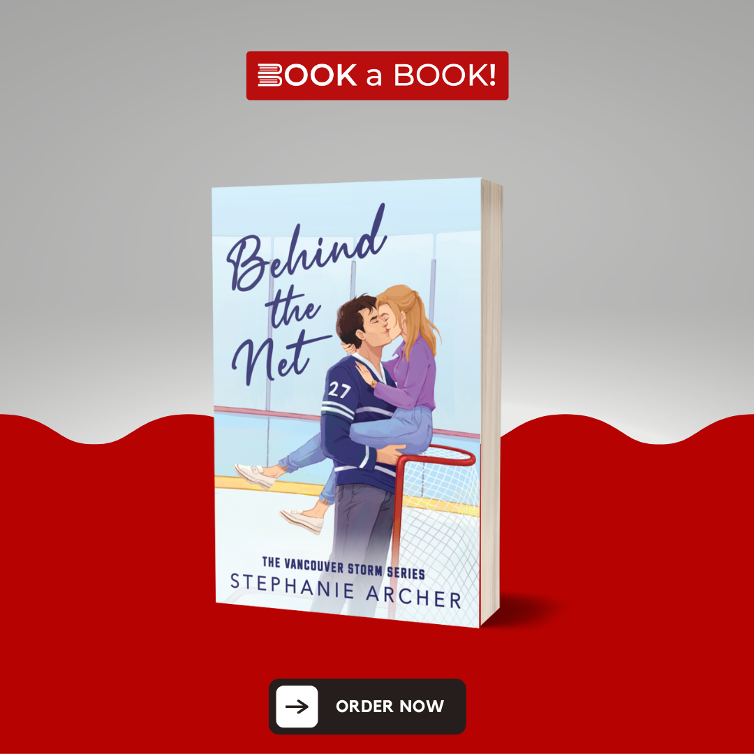 Behind the Net is a grumpy-sunshine pro hockey romance with lots of spice and an HEA. It’s the first book in the Vancouver Storm series, and can be read as a standalone.